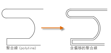 使用 OFFSET 可偏移多數幾何物件。當偏移距離大於可調整的距離時,雲形線和聚合線將自動進行修剪。