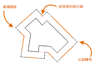 OFFSETGAPTYPE 系統變數可控制延伸的轉角是否進行銳利化、圓角或倒角。
