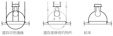 下列範例,使用籬選方式選取要修剪的一系列物件。
