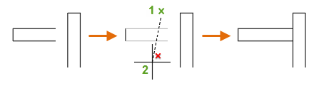 當您使用「標準」模式時,做為切割邊或邊界邊的所選物件,無需與正在修剪的物件相交。您可以將物件修剪或延伸到投影邊或外交叉點,也就是說,如果物件延伸,它們將在此處相交。