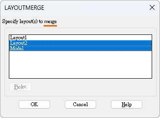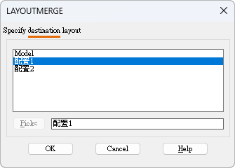 也可以使用指令行版本 -LAYOUTMERGE。提示將顯示如下: