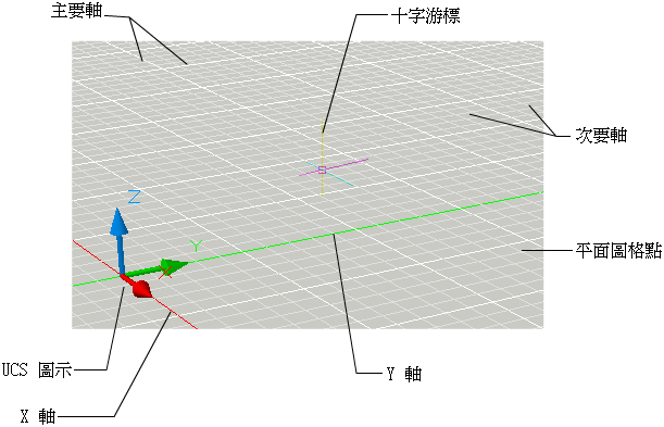 - 地平面格線。透視投影打開後,格線將顯示為地平面格線。將為格線主線、格線輔線和軸線設定顏色。