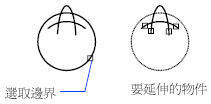 使用選取的物件定義要將物件延伸至的邊界邊。