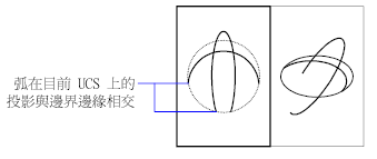 指定到目前使用者座標系統 (UCS) XY 平面的投影。會延伸在 3D 空間內與邊界物件不相交的物件。
