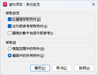 包含外部參考檔中的物件和圖塊。