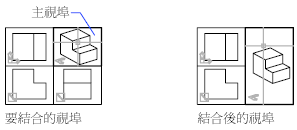 將兩個相鄰的模型視埠組合成一個較大的視埠。