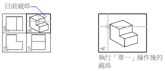 利用目前視埠中的視圖,將圖面返回單一視埠視圖。