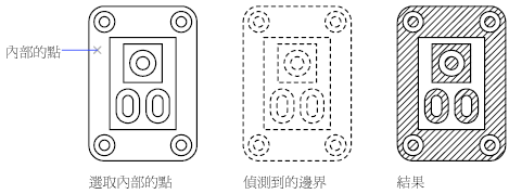 填充線邊界內的封閉區域或文字物件將被視為孤立物件