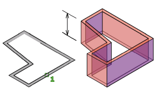 在您於選取一個 2D 物件、由封閉邊界形成的區域或 3D 實體面後移動游標時,取得視覺反饋。按或拉的行為會對應所選取的物件類型來建立擠出和偏移。在此範例中,會拉伸面積之間的聚合線以建立 3D 實體的牆。