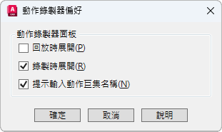 「動作錄製器偏好」對話方塊