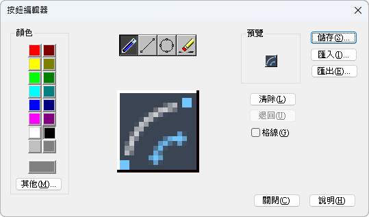 顯示編輯區的格線。每個格線方塊都代表單一像素。