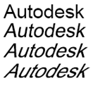 下圖展示了不同文字型式所使用的同一字體,其中這些文字型式使用了不同的傾斜設定來定義文字的傾斜。