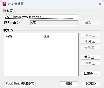 載入、卸載、儲存、建立、嵌入以及萃取 Visual Basic for Applications (VBA) 專案。