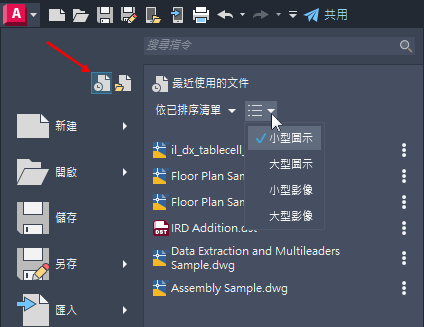 在「指令搜尋」方塊下,按一下「顯示選項」按鈕,並選取一個顯示選項。