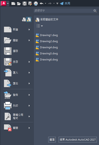 開啟的文件顯示在「目前開啟的文件」清單中,其中最近開啟的檔案會顯示在最上方。選取一個文件的名稱,以使其處於作用中的狀態。