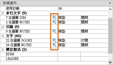 列出目前圖面中未使用且可清除的具名物件。您可以按一下加號,或者按兩下物件類型,列示任意物件類型的項目。您可以選取個別項目,或該物件類型的所有項目。