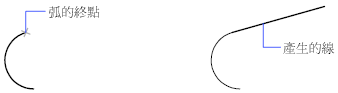 在一建立弧之後,您可以在與弧相切的端點開始一條線。您僅需要指定線長。