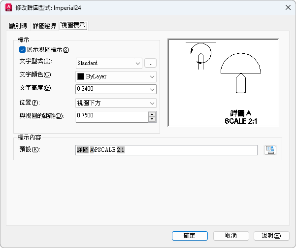 指定要用於詳圖標示的文字型式。
