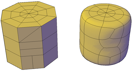 雖然您可以合併折繞成角的面,但是對產生的網面物件進行其他修改時可能會產生非預期的結果。