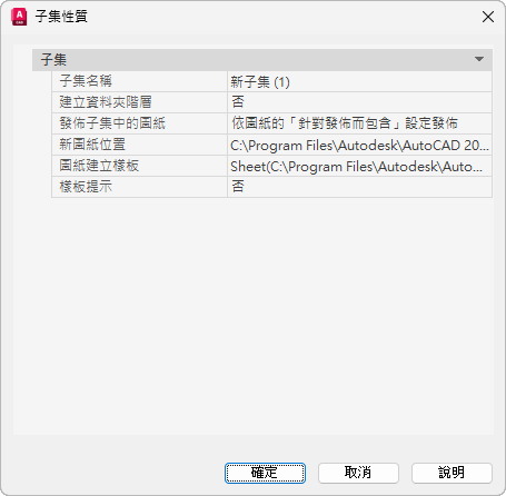 為包含此子集相關圖紙的所有新圖檔 (DWG) 指定資料夾位置。