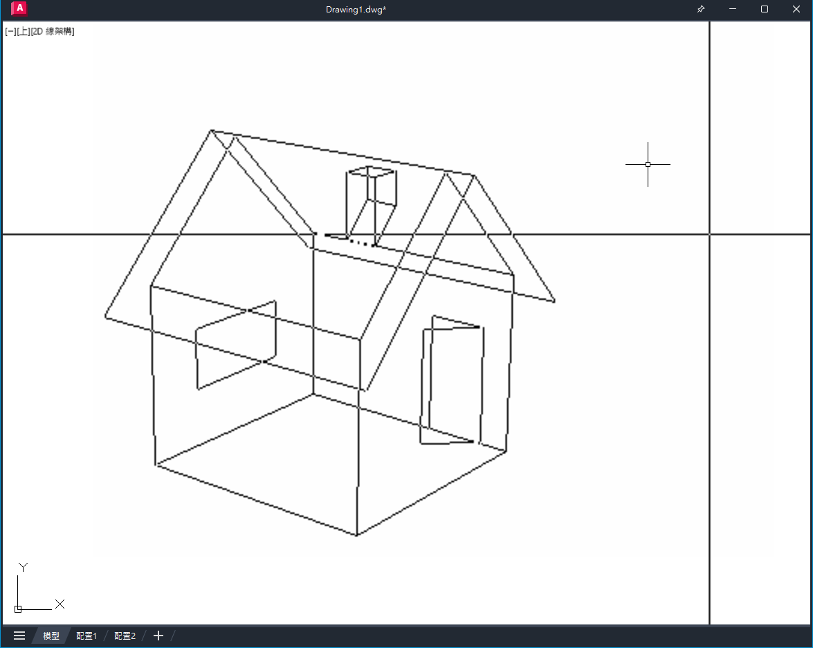 如果您在出現「選取物件」提示時按 Enter,DVIEWBLOCK 會顯示預覽影像。您可以在一個 1 單位乘 1 單位乘 1 單位的區域內自行建立 DVIEWBLOCK 圖塊,其原點在左下角。下列圖解展示了一個使用預設 DVIEWBLOCK 設定視圖 (移動圖形游標可調整視圖) 的範例。