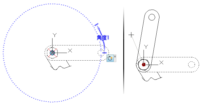 套用旋轉動作時,您可以選擇使動作的基準點與參數的基準點相依或不相依。