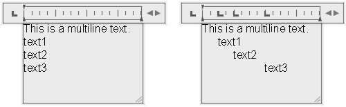 尺規上的滑塊可展示相對於邊界框左側的縮排。頂部的滑塊縮排段落的第一行,而底部的滑塊縮排段落的其他行。