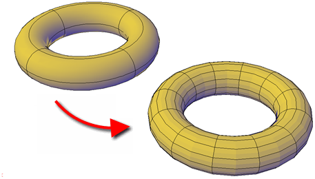 您可以使用 MESHSMOOTH 指令將某些物件轉換為網面物件。將 3D 實體、曲面和舊式網面物件轉換為增強的網面物件,以利用平滑化、細分、縐摺和分割等功能。
