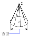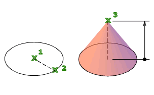 指定圓錐軸的端點位置。軸端點為圓錐的頂點或圓錐視域頂面的中心點 (「頂部半徑」選項)。軸端點可以位於 3D 空間的任何位置。軸端點可定義圓錐的長度和方位。