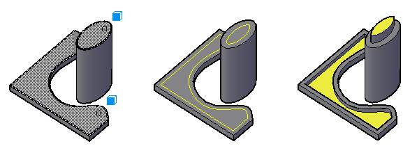 您可以偏移 3D 實體或曲面上平物面的邊緣。結果會是封閉的聚合線或雲形線,位於與選取面或曲面相同的平面上,而且可以在原始邊緣之內或之外。