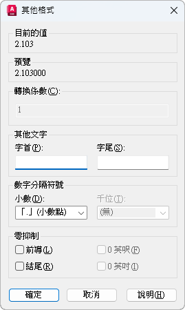 控制抑制前導零與結尾零、以及零英呎與零英吋。