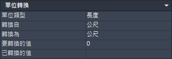 單位轉換可用於長度、面積、體積與角度值。根據您選取的單位類型,接著您可以選擇要轉換的單位清單和轉換後的單位清單。