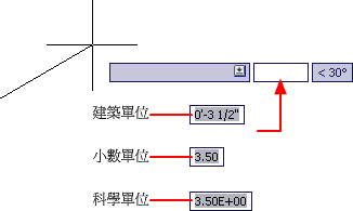 您可以從數種常用慣例中進行選擇,以表示「性質」選項板、動態輸入、狀態列和其他位置中顯示的線性距離和座標的格式和精確度。