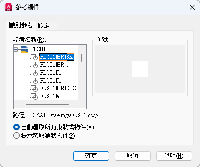 顯示所選參考的檔案位置。如果是一個圖塊,將不會顯示任何路徑。