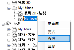 無法從功能區頁籤退回功能區面板的移除。如果移除錯誤的功能區面板,請按一下「取消」以關閉自訂使用者介面 (CUI) 編輯器,且不儲存所做的變更。執行此作業將退回任何其他您可能已進行的變更。