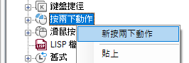 中的自訂」窗格中,在「按兩下動作」節點按一下右鍵。按一下「新按兩下動作」。