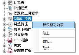 將指令加入快顯功能表的步驟