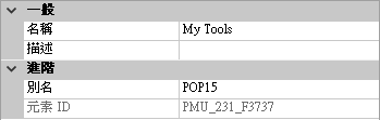 在「別名」方塊中,會根據已載入的下拉式功能表數目,自動為新功能表指定別名。例如,如果指定的別名是 POP12,表示已載入十一個下拉式功能表。視需要編輯此別名。