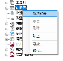 中的自訂」窗格內,於「功能表」節點上按一下右鍵。按一下「新建功能表」。