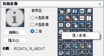在「按鈕影像」窗格的影像清單上按一下右鍵,然後按一下「匯入影像」。