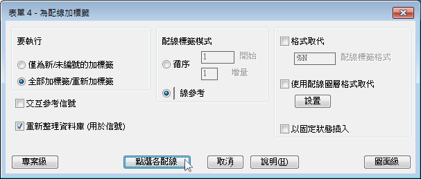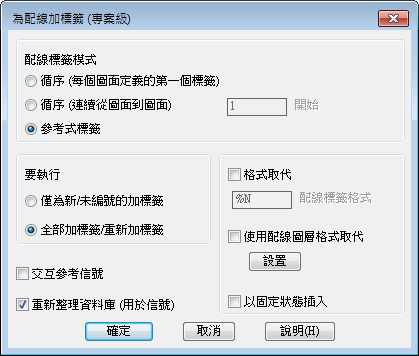 使用「配線號碼」指令,在個別配線、圖面級和專案級上加入配線號碼。