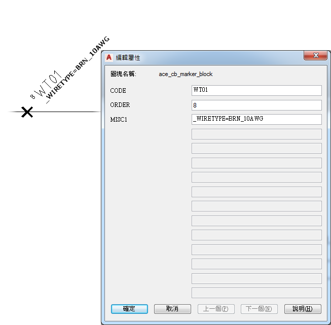 註: 在標識圖塊上定義的屬性值將取代所有定義在工作表中的值。