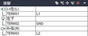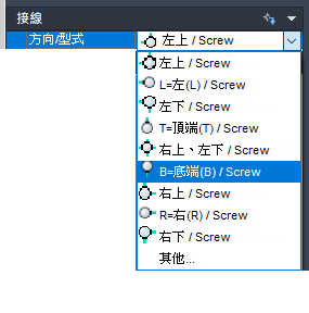 您可以為資源庫符號定義接線點與端子文字。加入接線時,您可選取型式、配線連接的方向,以及是否包含可選的 TERMxx 和 TERMDESCxx 屬性。在此練習中,將在符號的左側、底部與右側插入接線屬性。