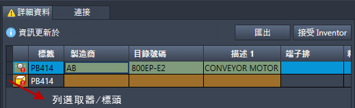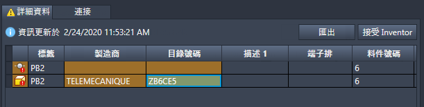 如果您的標籤、安裝和位置屬性存在差異,請使用對等的 Inventor 值手動更新 Electrical 元件的值,因為這些屬性不屬於「接受 Inventor」作業。