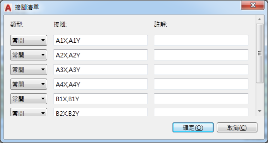 按一下以開啟「接腳清單」對話方塊,您可在其中定義子符號的接腳。