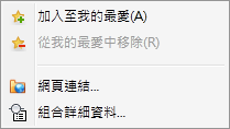 - 將記錄加入至作用中品類的我的最愛清單。選取的記錄不在我的最愛清單中時,此選項會顯示在子功能表中。