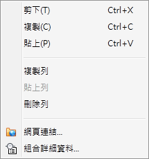 在結果區段中的任一欄標頭上按一下右鍵可顯示關聯式功能表。
