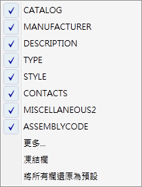 註: 子配件項目 (由「配件清單」值定義) 會包括在搜尋結果中。整體搜尋結果以「目錄」、「製造商」和「配件代碼」欄的記錄為基礎。