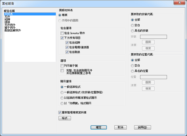 指定是處理專案、作用中的圖面還是處理選取的物件。如果選取專案,某些報告會提供一個選項,以選取要處理的圖面。