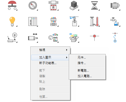 「加入電路」。 註: 您還可以在空白空間中按一下右鍵並選取「加入圖示」